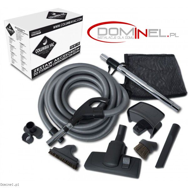 Zestaw składa się z wysokiej jakości akcesoriów sprzątających. Całość została dobrana w taki sposób by ułatwić i uprzyjemnić pracę z systemem centralnego odkurzania. W skład zestawu wchodzą: wąż (9m) z wyłącznikiem w rączce wraz z wieszakiem na ścianę, rura teleskopowa z uchwytem do powieszenia, szczotka wielofunkcyjna, ssawka uniwersalna, ssawka meblowa, ssawka szczelinowa. Całość uzupełnia specjalna torba w której można przechowywać akcesoria.